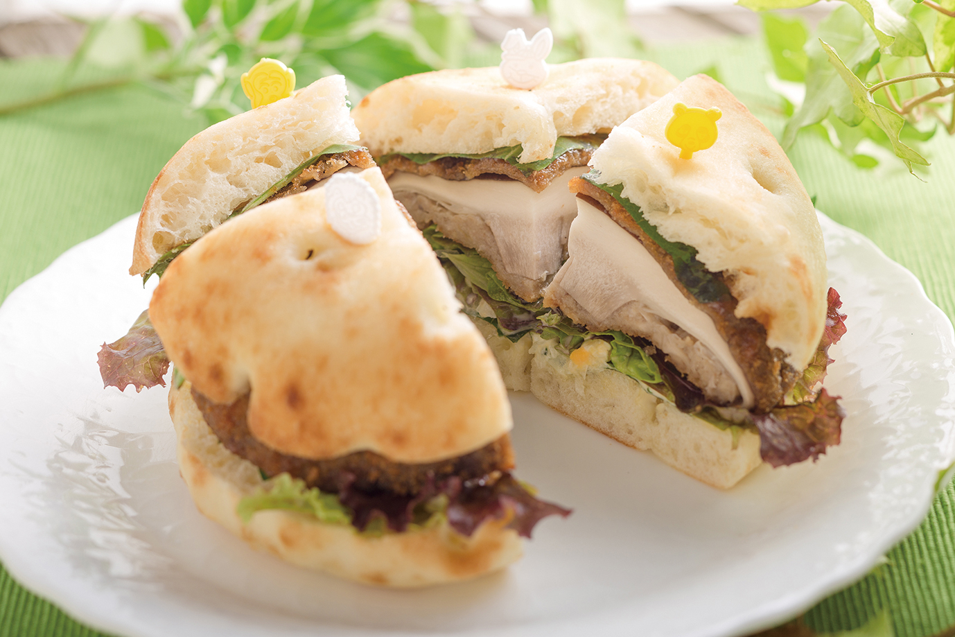 和歌山県産椎茸の肉詰めフライをメインの具材にし、大葉・レタス・卵を使用した本格バーガーで、和歌山県産梅肉を使用したソースが全体の味わいを引き立たせています。