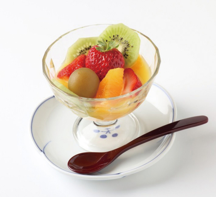 Punch made with Wakayama plums, mandarin oranges, and strawberries is finished with carbonated orange juice for a refreshing taste. It is the perfect dessert after enjoying fish dishes.