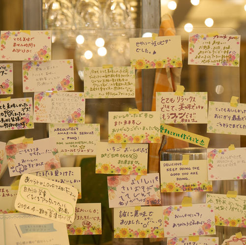 The main ingredient is the life of "Agarato" and neighboring farmers in Wakayama/Kozagawa. We purchase rice, vegetables, and livestock products from reliable producers, serve them to our customers, and return the profits to "Kozagawa," the place of production again. We are working to create a sustainable system that protects the health and smiles of urban residents and allows rural areas to become self-sufficient by protecting the earth and its seeds through natural plant-based cultivation that is in line with the natural processes of nature, and by circulating the abundant life energy that has grown up in the city. To share joy with all living things. To fulfill the role of human beings gifted with intelligence, and to weave a peaceful society for future generations.