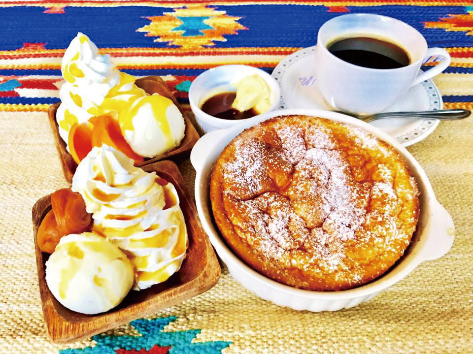 用甜糖漿烤的和歌山柑橘煎餅。甜中帶苦,苦中帶甜,是成人的甜點。請品嚐咖啡館的招牌煎餅,表面酥脆,內裡鬆軟。